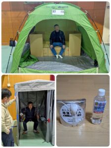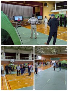 本日、11月9日(日)午前に熊取町総合防災訓練が中央小学校体育館で行われました。😊 雨天の中、各自治会の皆様が集合してダンボールベッドベッドの組立🛌やテントの設営⛺️に励んでいました。また、防災トイレの展示🚽もありました。帰りには非常食🍚のおみやげも頂きました。😆参加された皆様は良い経験になったのではないのでしょうか。 午後から予定していた消防防災フェア🚒は雨天のため中止となり、楽しみにしていた子供たちは残念だったと思います☔